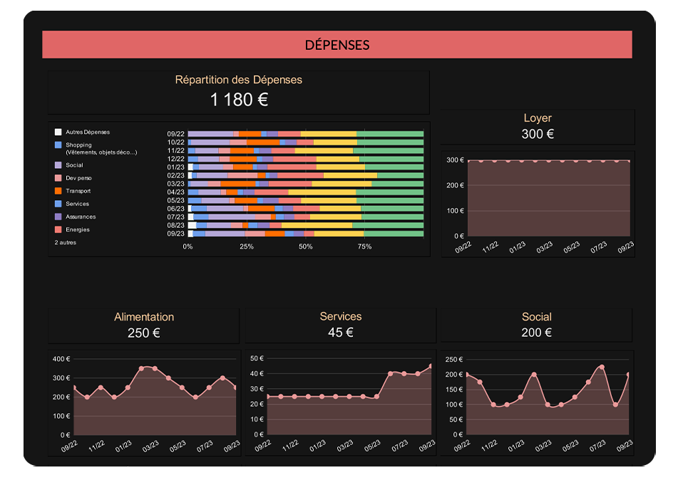 "Je suis très satisfait du finance tracker. Je l’utilise depuis octobre et j’ai déjà une grosse évolution sur mon suivis de finance que je ne faisais presque pas avant. C’est très clair et d’un coup d’œil on peut visualiser sa situation. Je peux le modifié pour mon usage et ça très cool. Je le recommande à 100%."